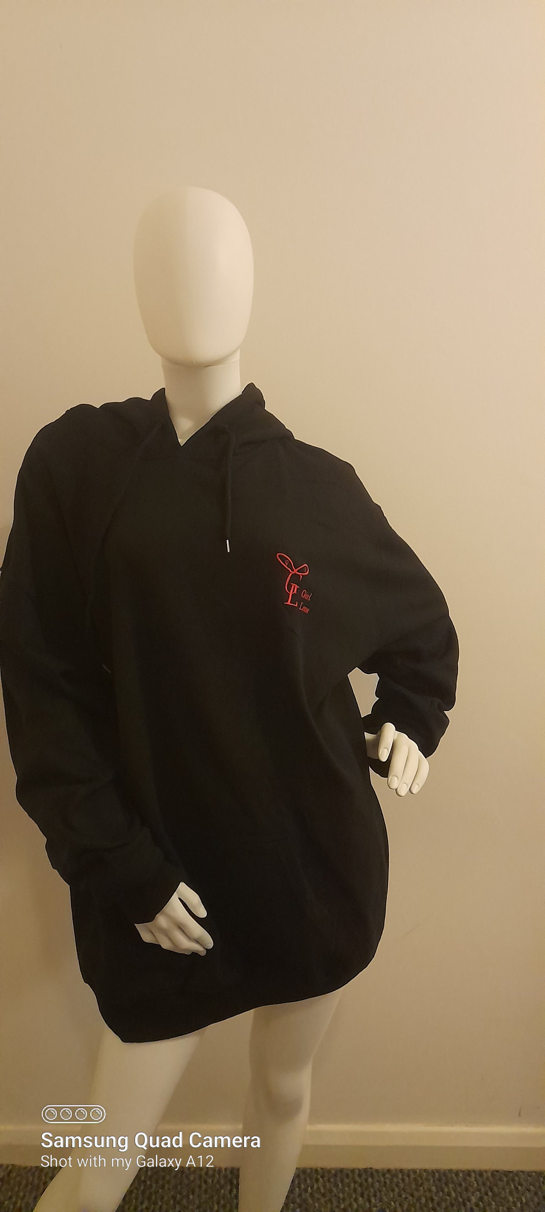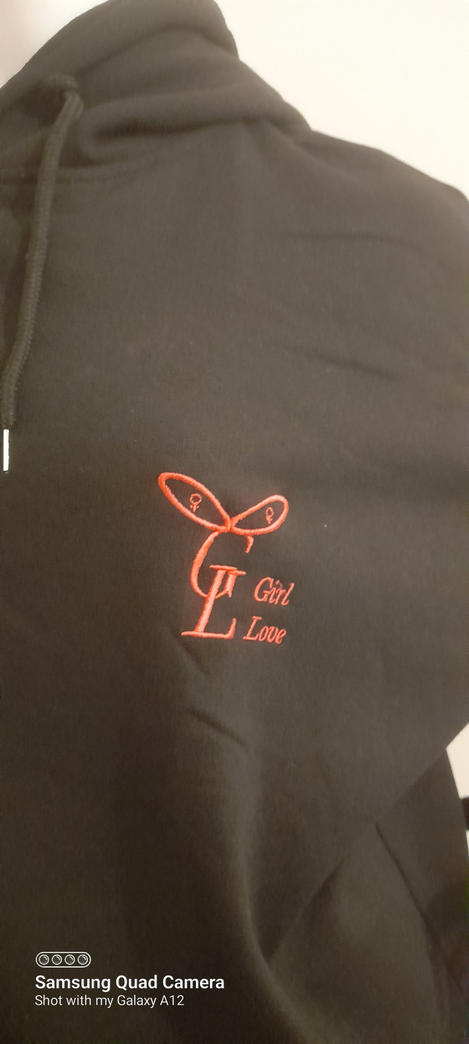 Black girl love hoodies embroidery on the left breast and centre of the hood in pink